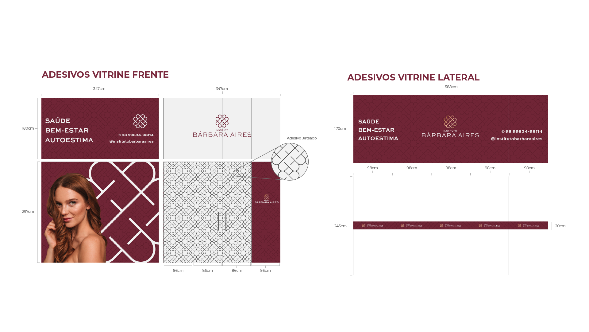 Desenvolvido para integrar identidade e funcionalidade, o projeto de sinalização das vitrines e fachadas do Instituto Bárbara Aires foi pensado para comunicar com clareza e impacto visual no cenário urbano. Seguindo rigorosamente as diretrizes do Manual da Marca, a solução equilibra visibilidade e adequação ao espaço, respeitando as particularidades do ambiente – como superfícies disponíveis e condições de aplicação. O resultado é um sistema de comunicação coerente, que reforça a identidade da empresa enquanto se destaca na paisagem da cidade, garantindo legibilidade e harmonia com a arquitetura local. A proposta da marca é estabelecer-se como uma referência no setor imobiliário, sendo reconhecida pelos clientes como uma empresa confiável, dedicada a oferecer uma ampla variedade de dispositivos e serviços de qualidade, além de um atendimento excepcional e expertise no mercado imobiliário.