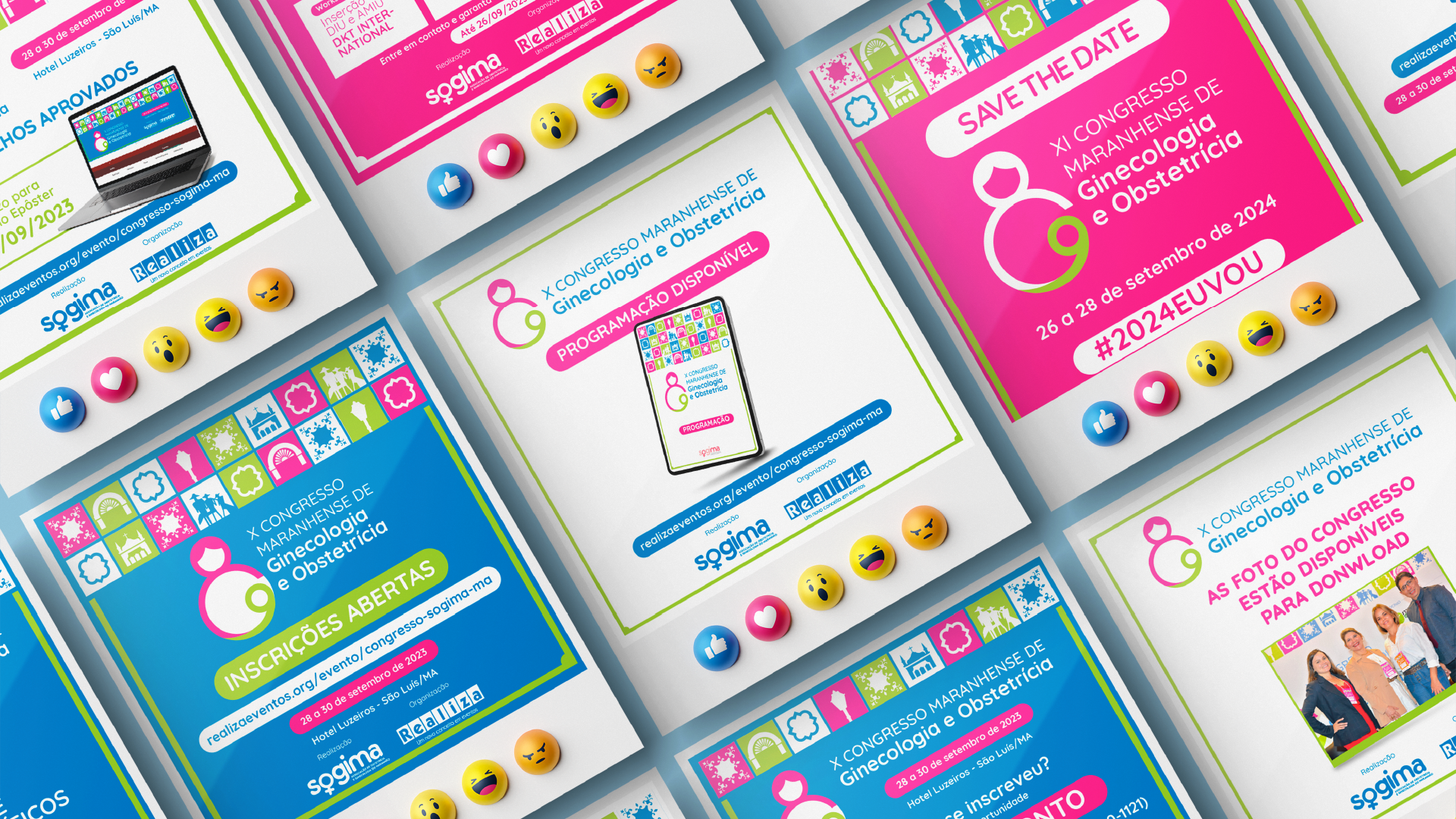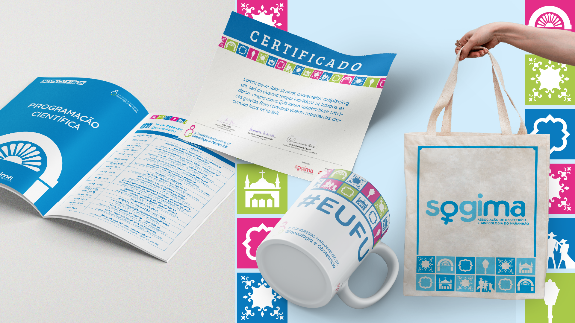 A marca do X Congresso Maranhense de Gibecologia e Obstetrícia integra os conceitos de reunião, medicina e regionalidade maranhense produzindo reconhecimento e diferenciação do evento a partir do uso de icones próprios desenvolvidos exclusivamente para o evento..